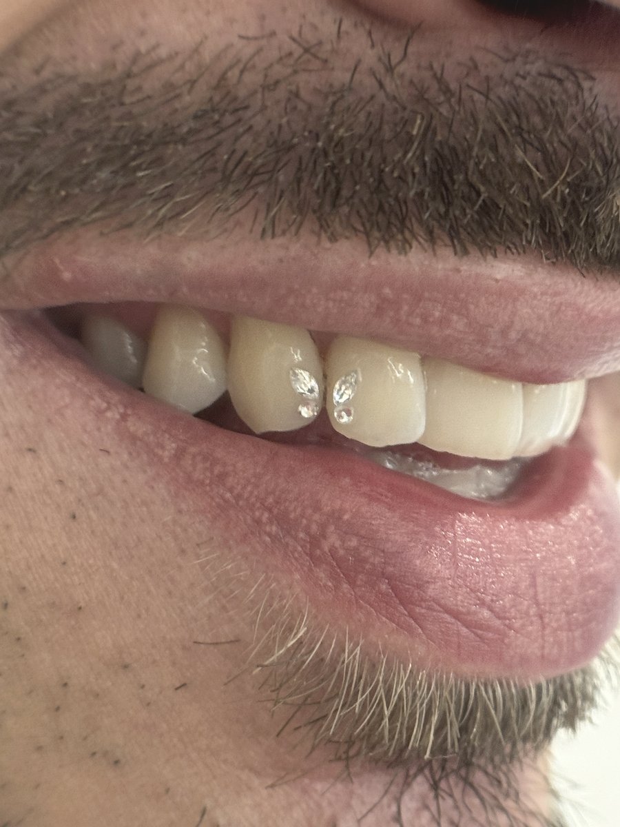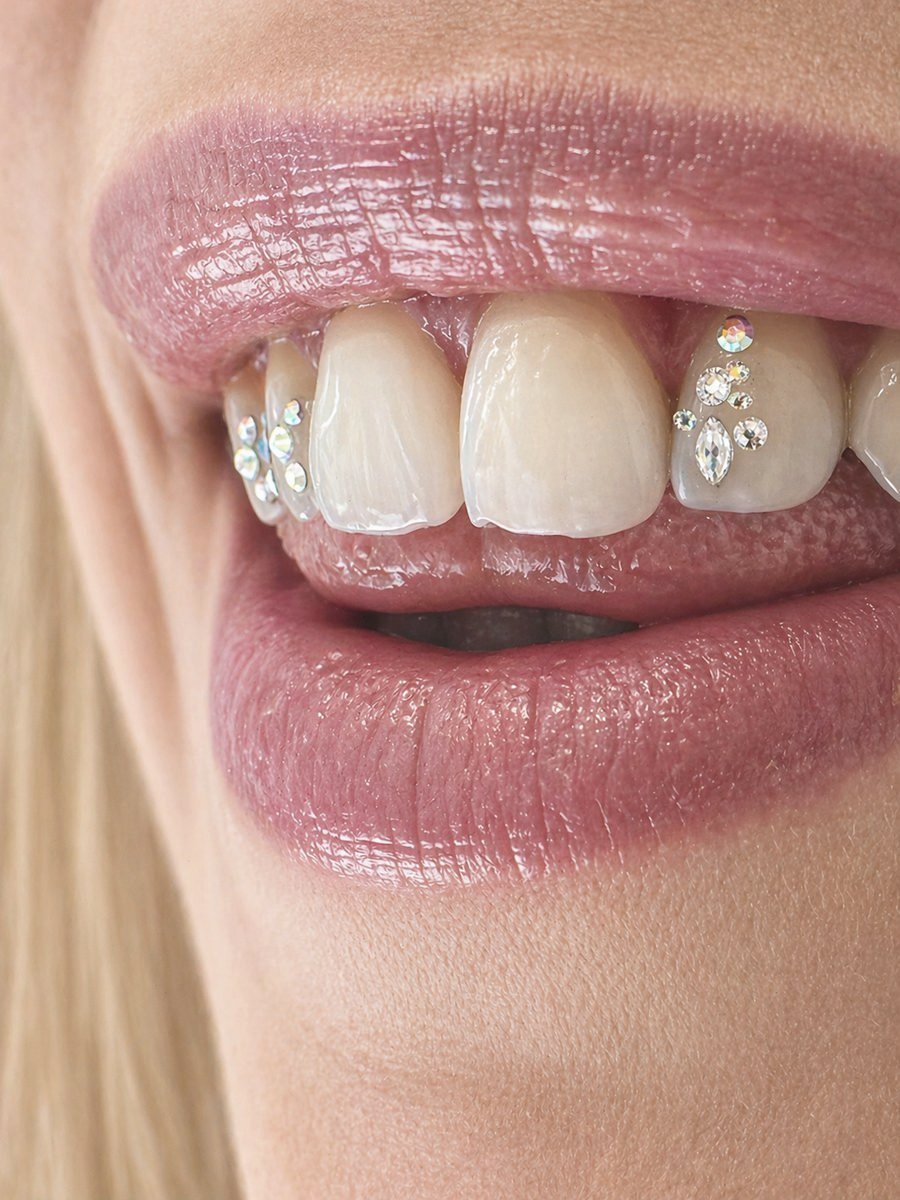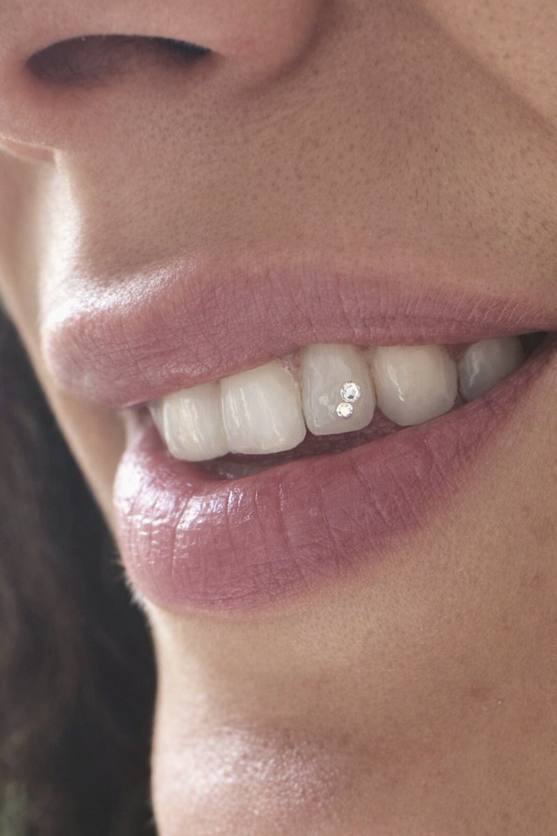 Zahnschmuck ist die diskrete, nicht-invasive Art, deinem Lächeln einen einzigartigen Charakter zu verleihen. Sorgfältig appliziert – schonend, sicher und wunderschön.